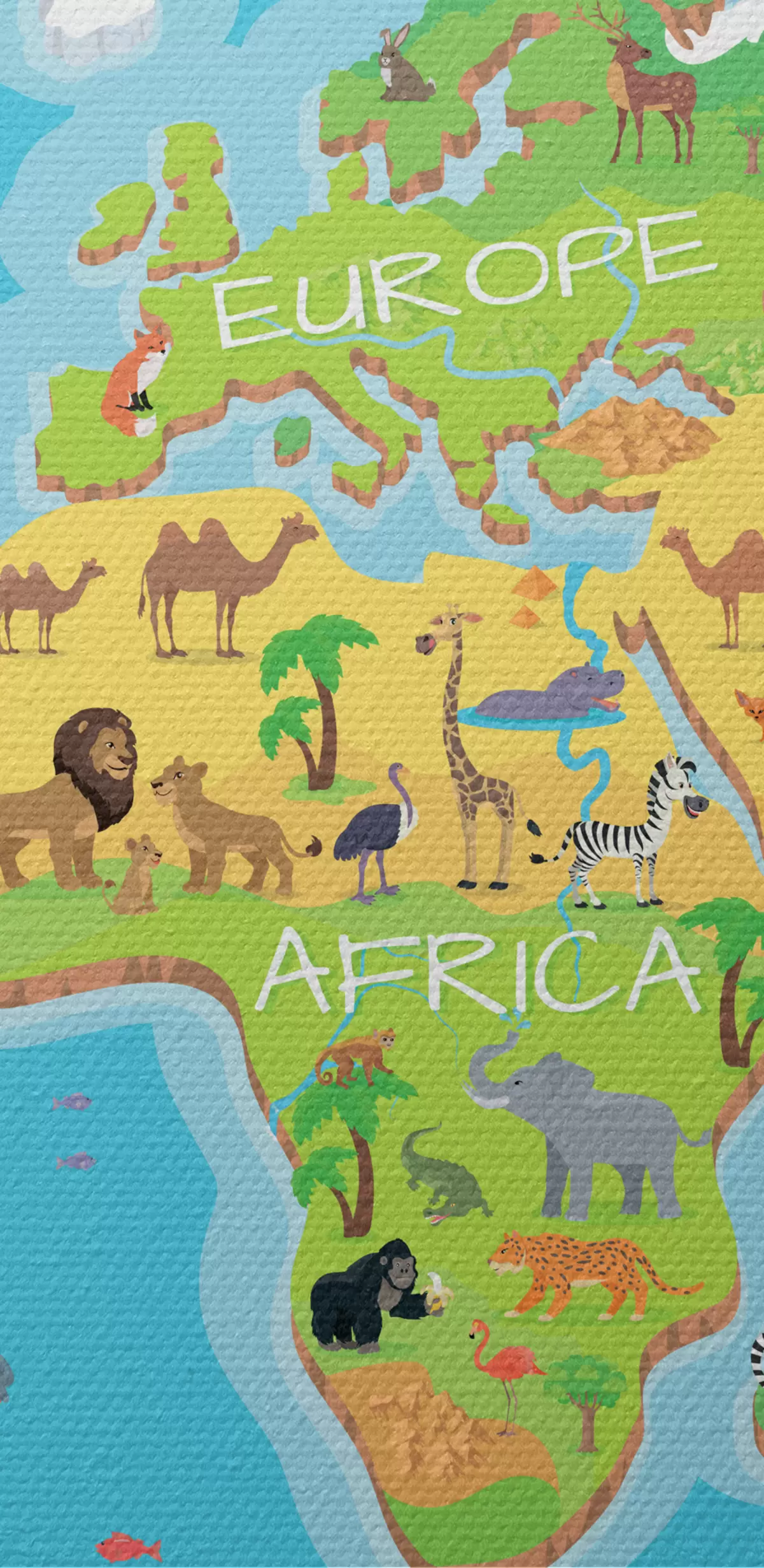 Картина Карта континентів із тваринами s32105