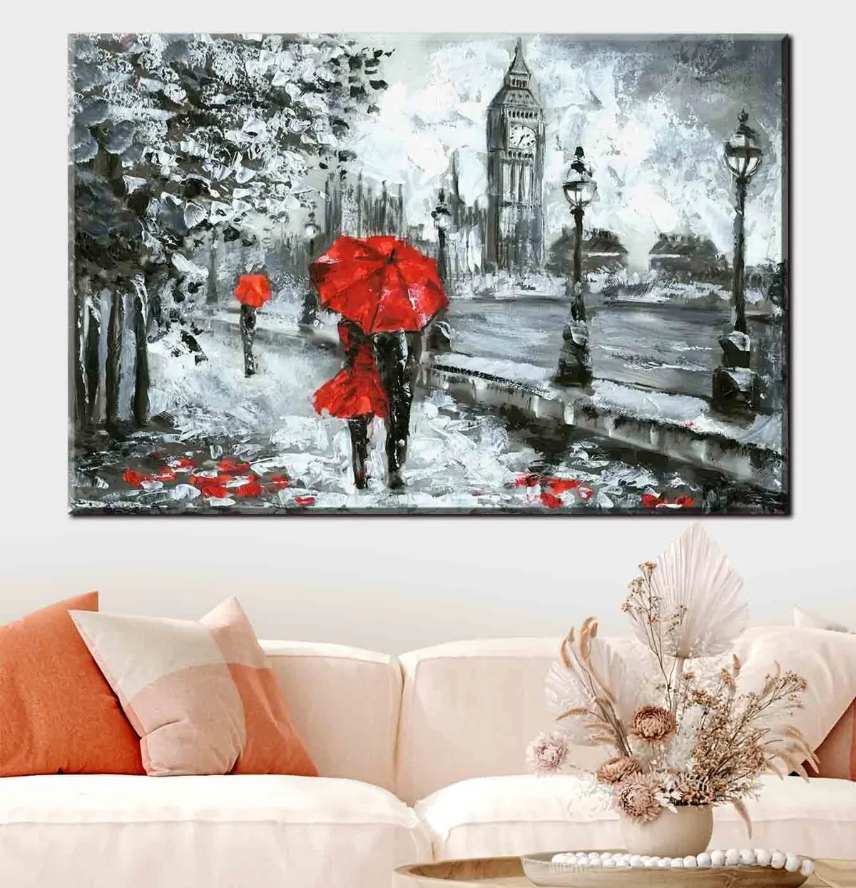 Картина Картина маслом, вид на вулицю Лондона в чорно-білих тонах s34614