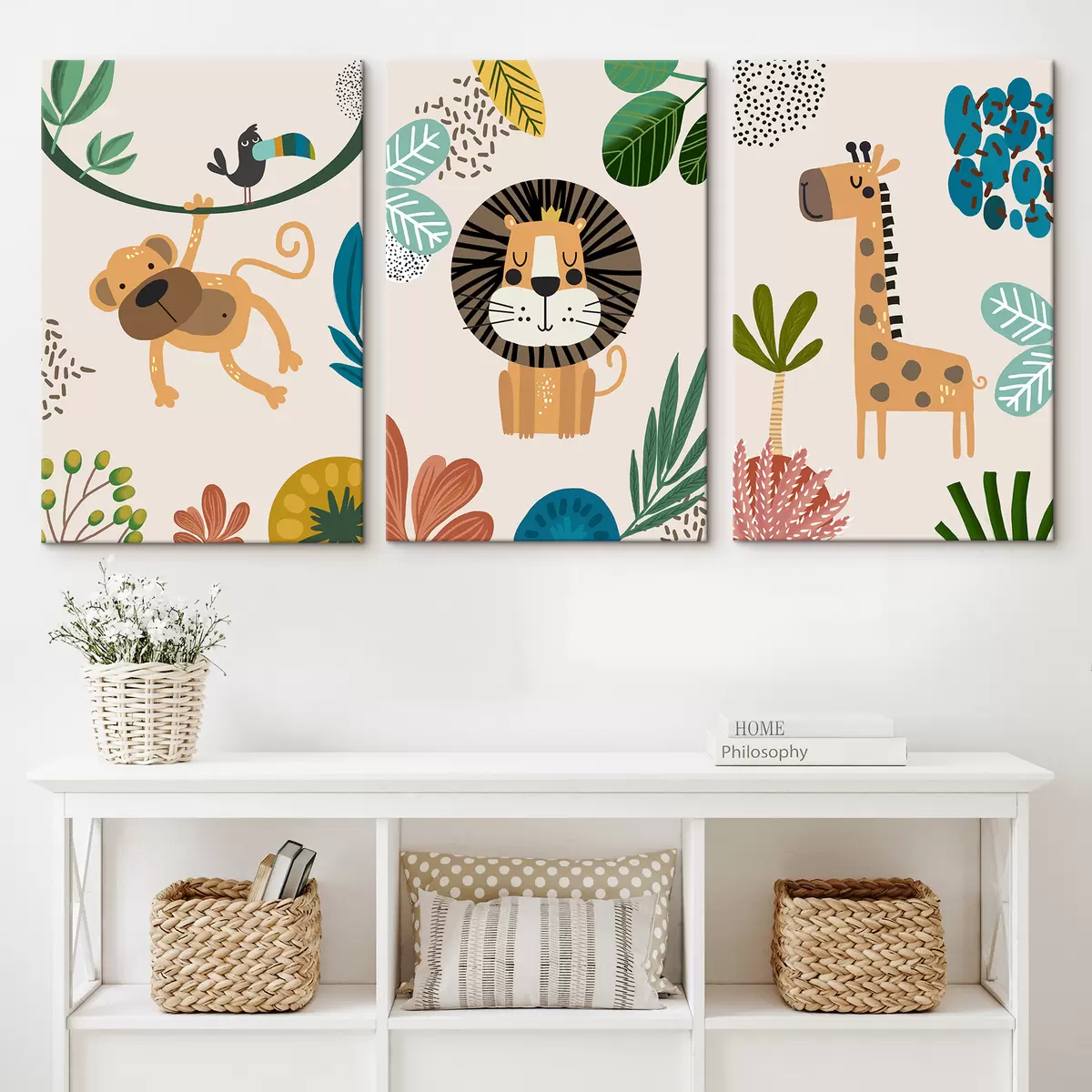 Картина Тварини в джунглях в стилі сафарі, бохо: мавпа, лев, жираф Арт. m00332