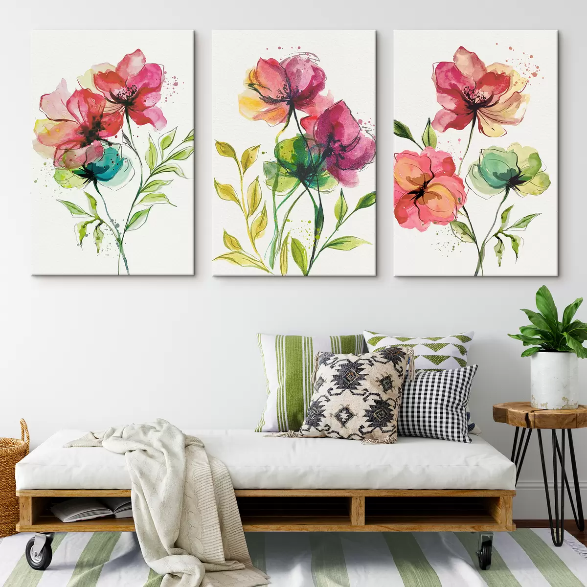 Картина Ніжні акварельні квіти з бризками фарби m00340