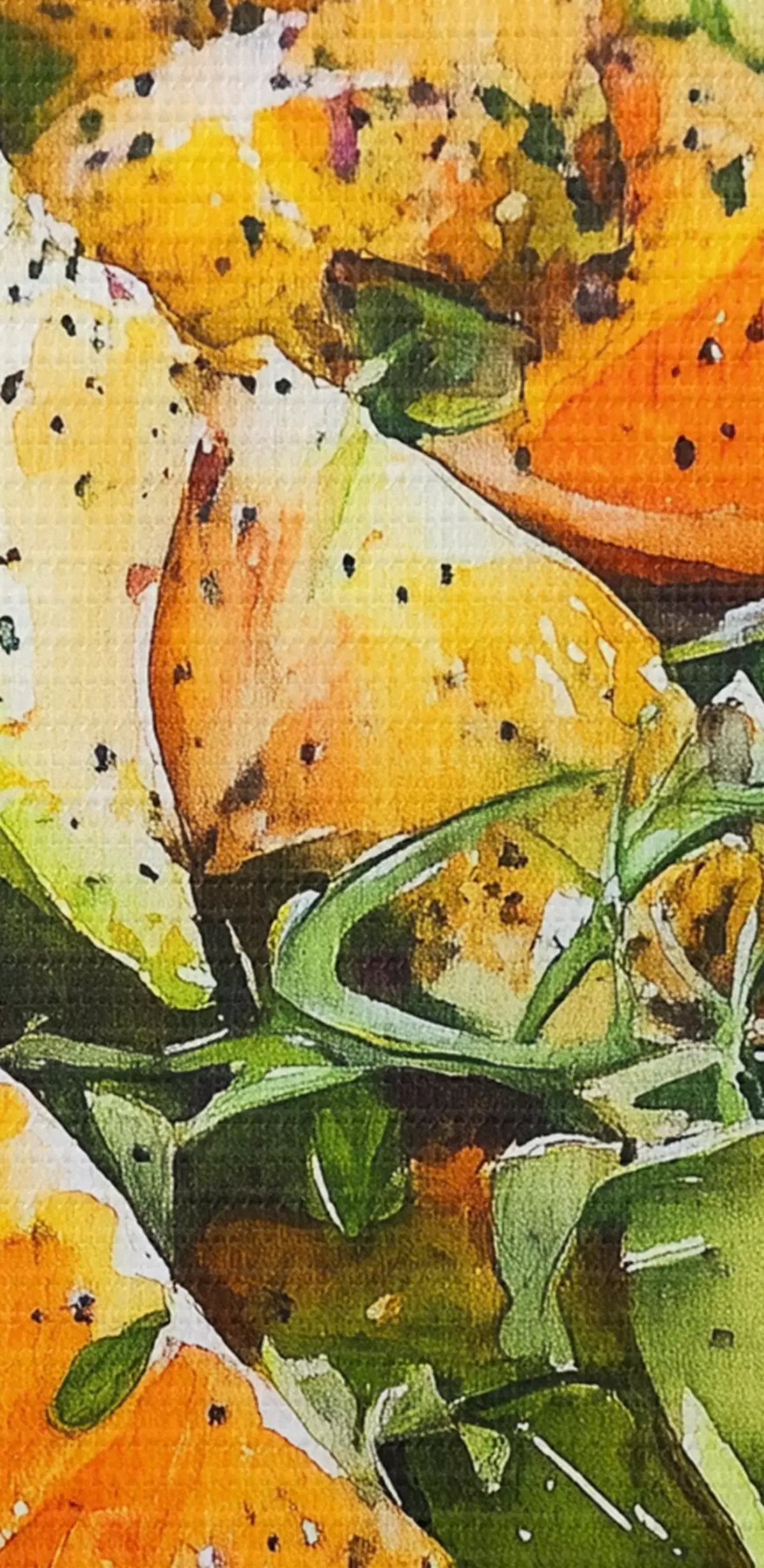 Картина Смачний святковий салат з апельсинами, бринзою, гарбузом та авокадо, акварельна їжа Арт. m00388