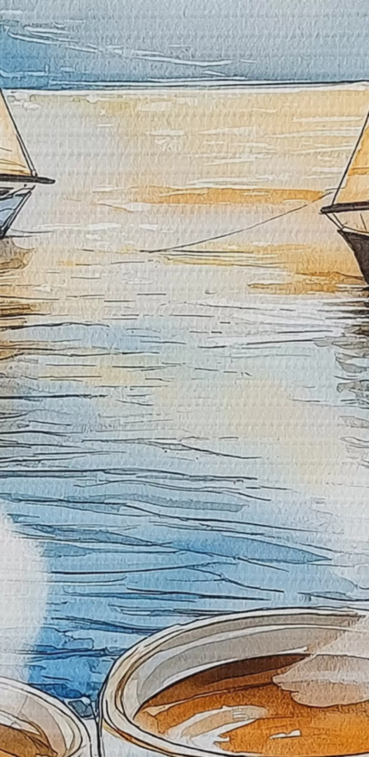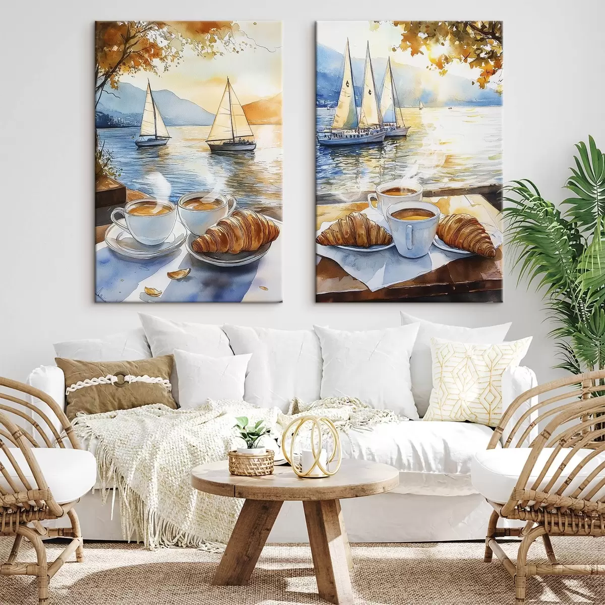 Картина Захід сонця на озері з підйомами кави, вітрильники, природа, подорожі Арт. m00407