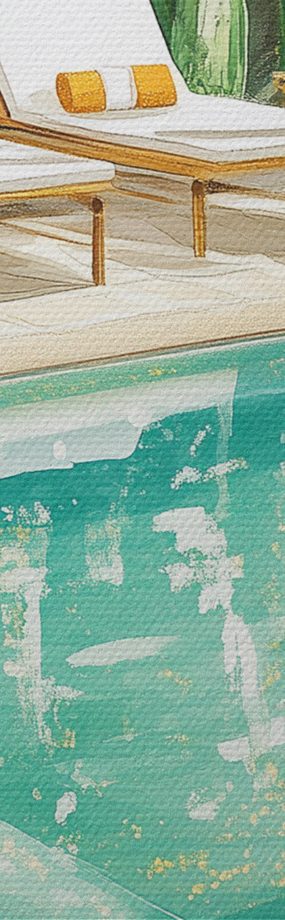Картина Літній басейн, вінтаж, тропічний ліс, зелень, пальми, акварельний стиль m00422