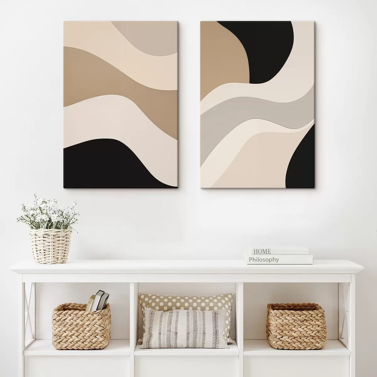 Картина Абстрактні хвилі в бежево-чорних тонах Арт. m00460