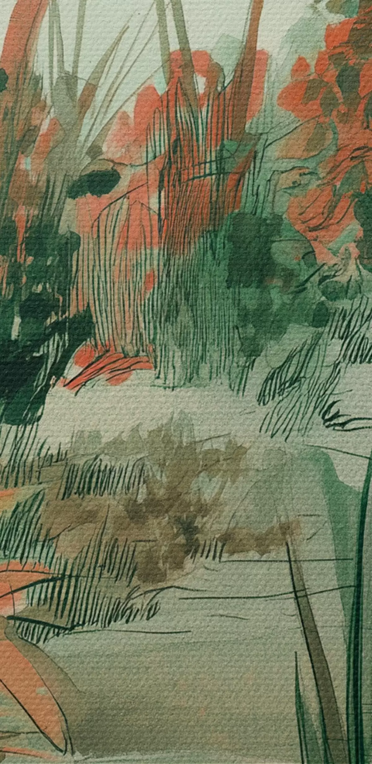Картина Зелений східний сад з кущами та деревами Арт. m00478