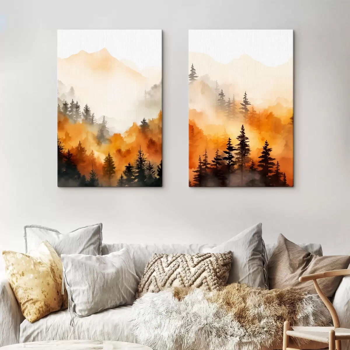 Картина Пейзажна акварельна картина, що імітує ліс з високими соснами та горами на задньому плані Арт. m00519