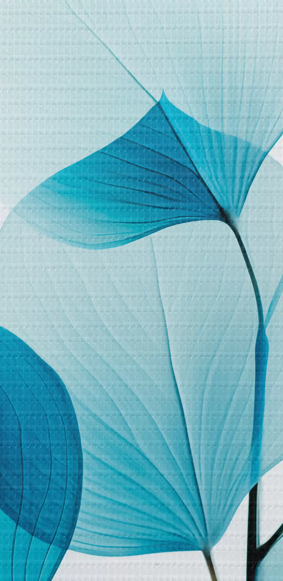 Картина Гілка з напівпрозорим блакитним листям, видно тонкі прожилки, легка і спокійна композиція, мінімалістична естетика m00522