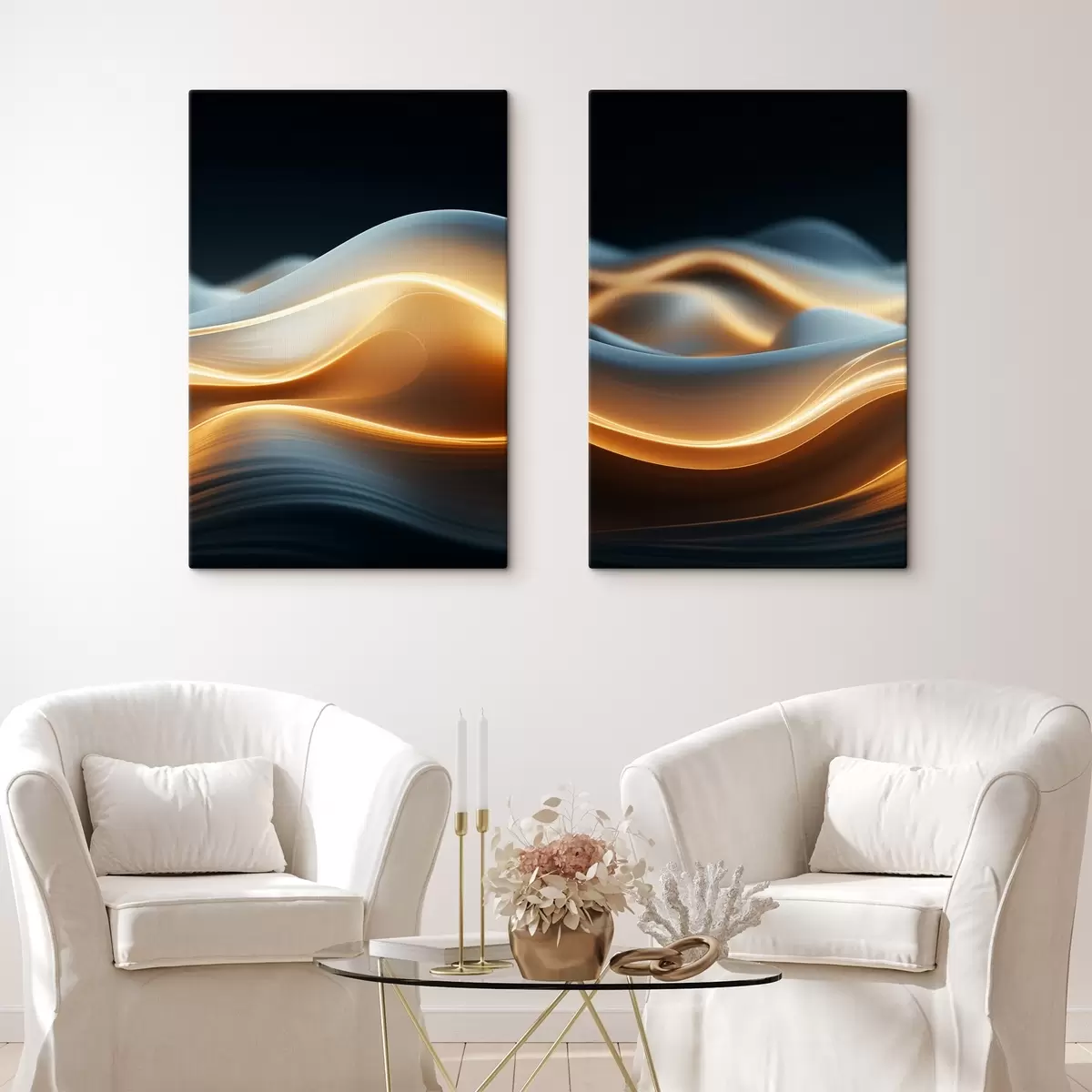 Картина Абстрактні плавні форми з помаранчевими лініями, плавні криві та лінії, динамічна композиція, темне тло Арт. m00526