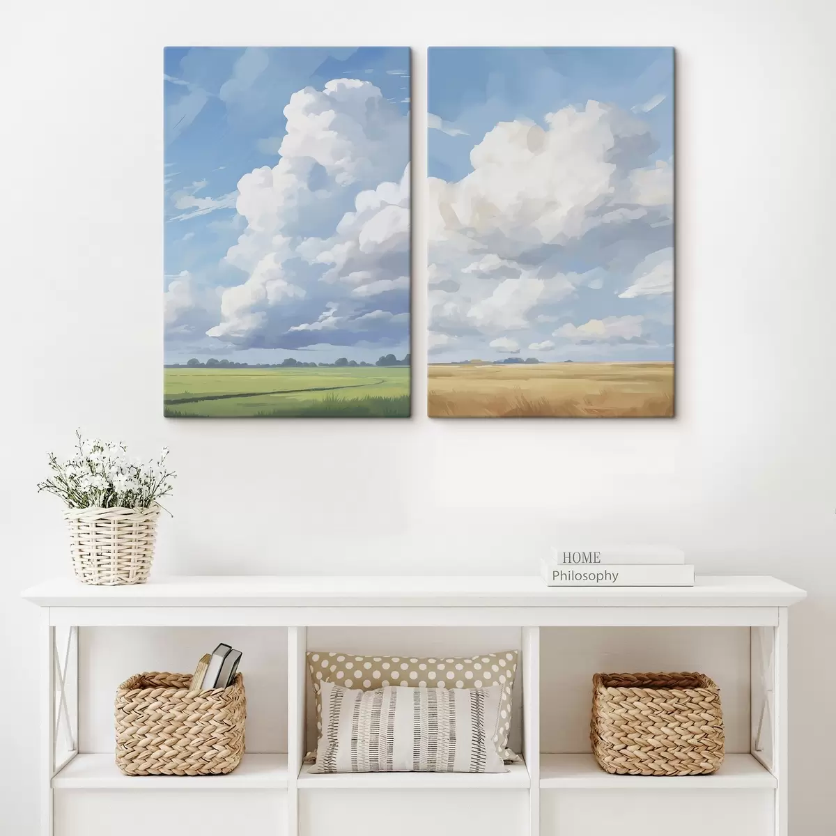Картина Поле на тлі неба з величезними хмарами Арт. m00624