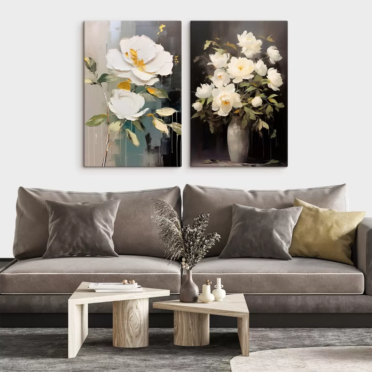 Картина Білі півонії на темному тлі: декоративна композиція Арт. m00634