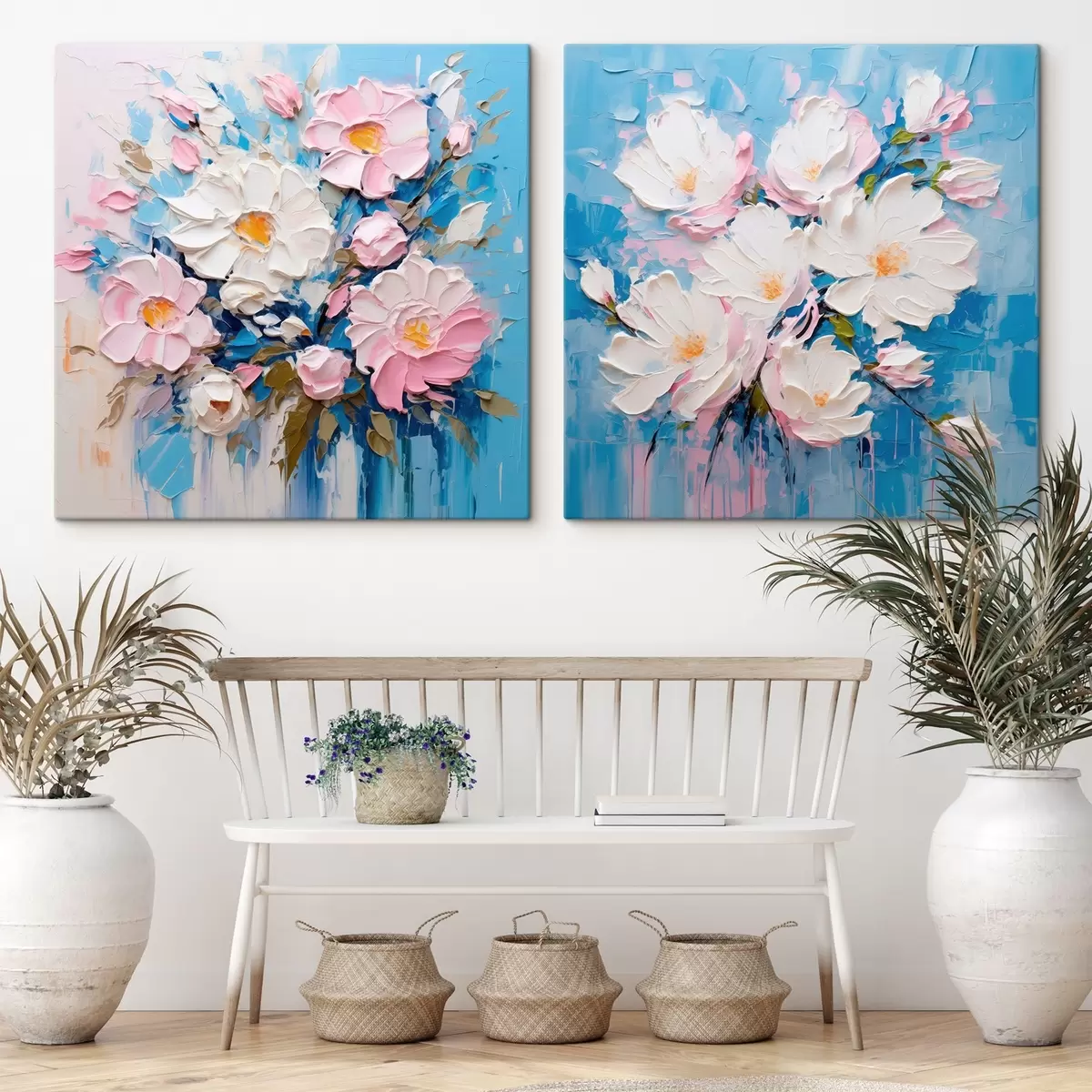 Картина Абстрактні квіти: декоративна композиція в рожево-блакитних тонах Арт. m00643