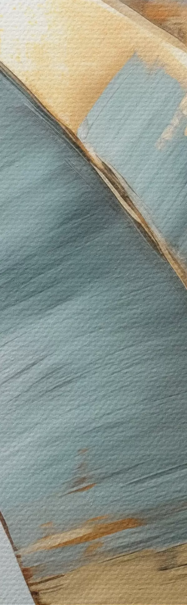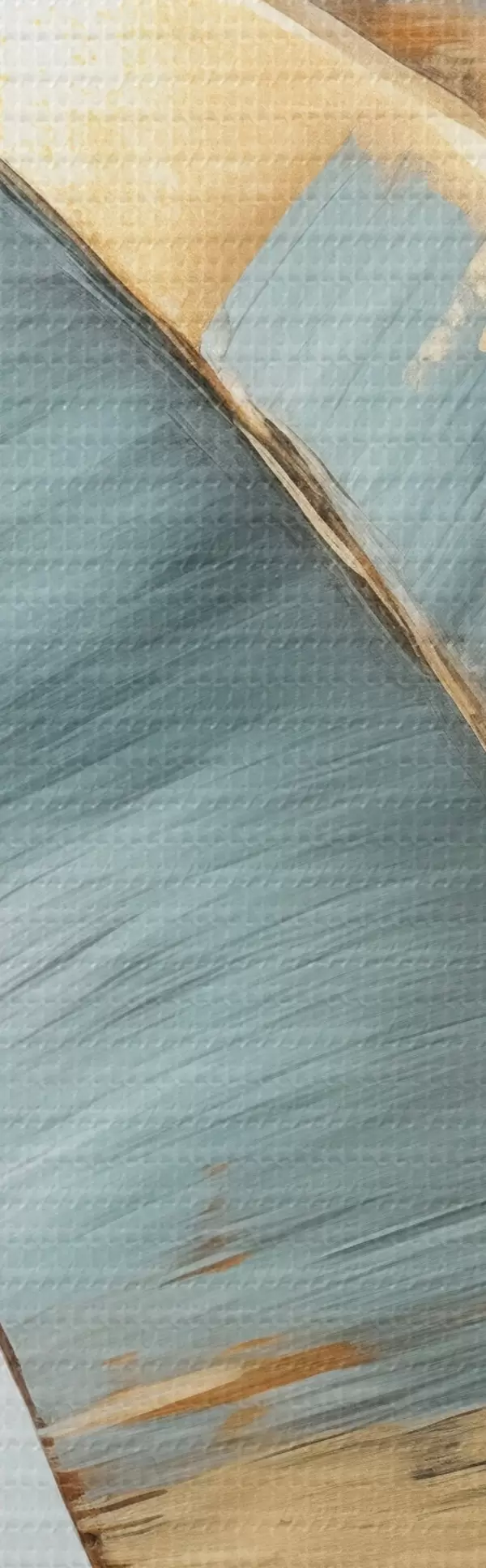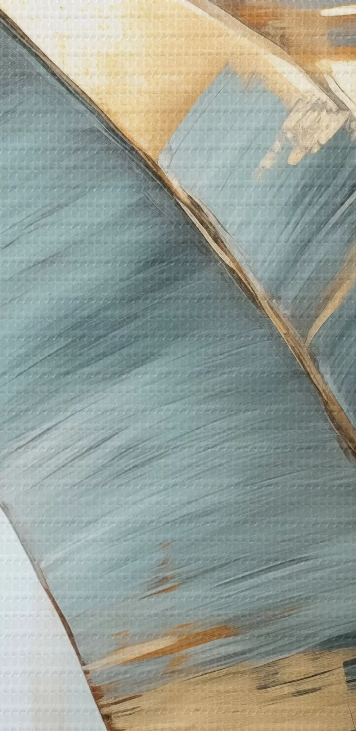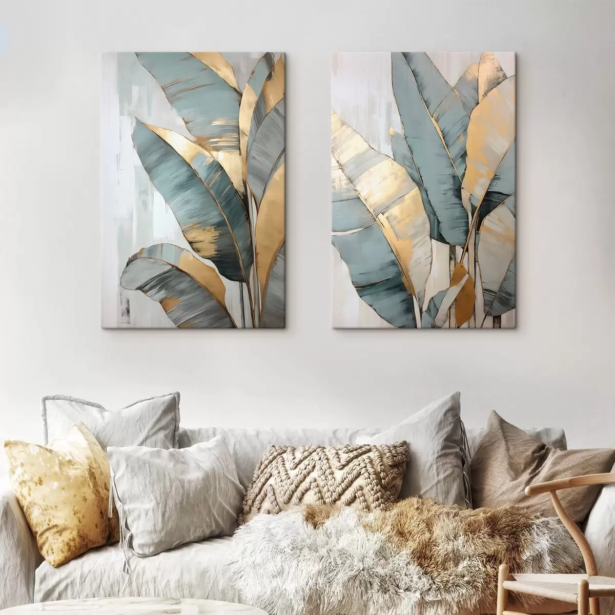 Картина Набір приглушеного синього, сірого та жовтого бананового листя з видимими мазками пензля на білому абстрактному тлі m00645