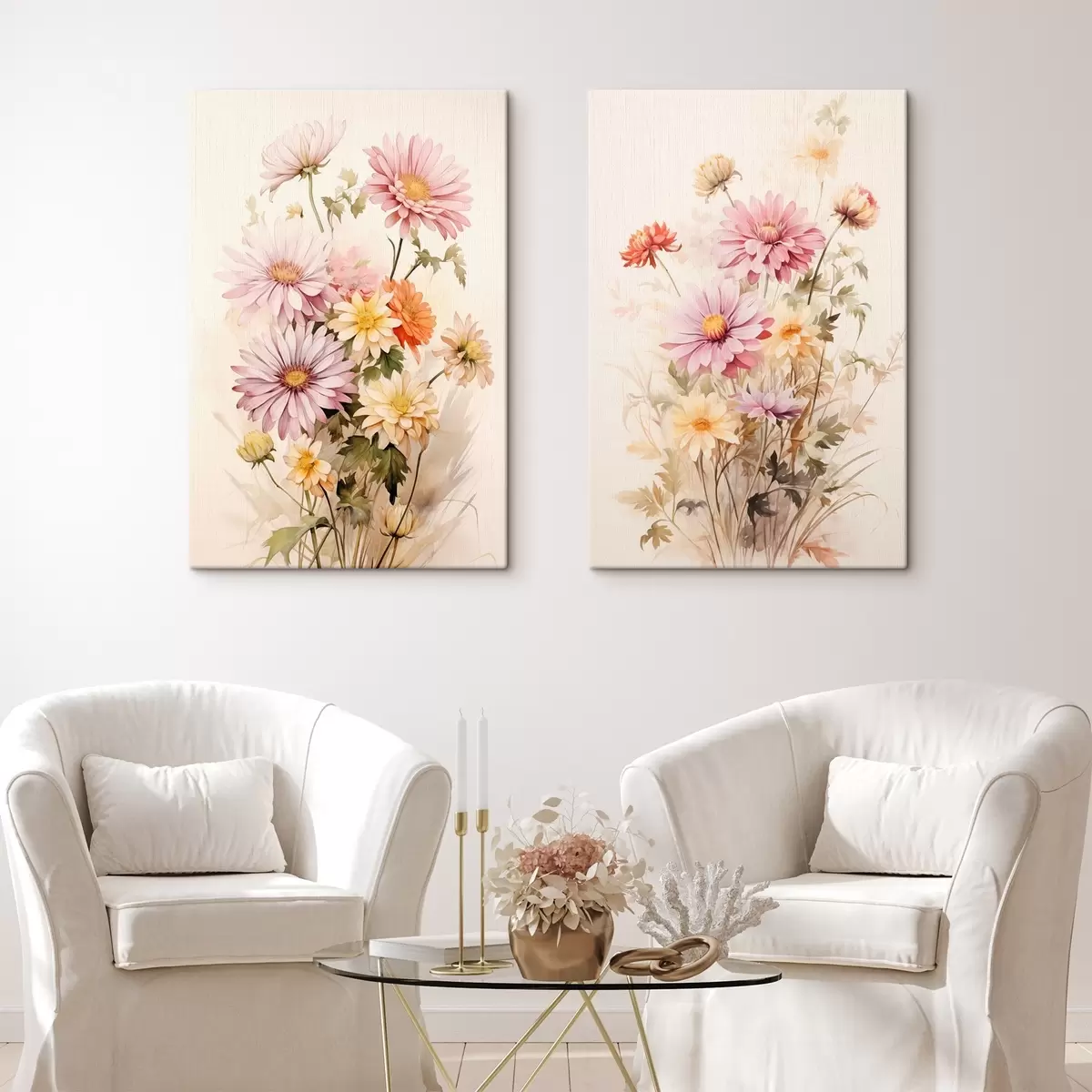 Картина Букет різнокольорових квітів, м'який акварельний стиль, на світлому тлі, ботанічна ілюстрація Арт. m00649