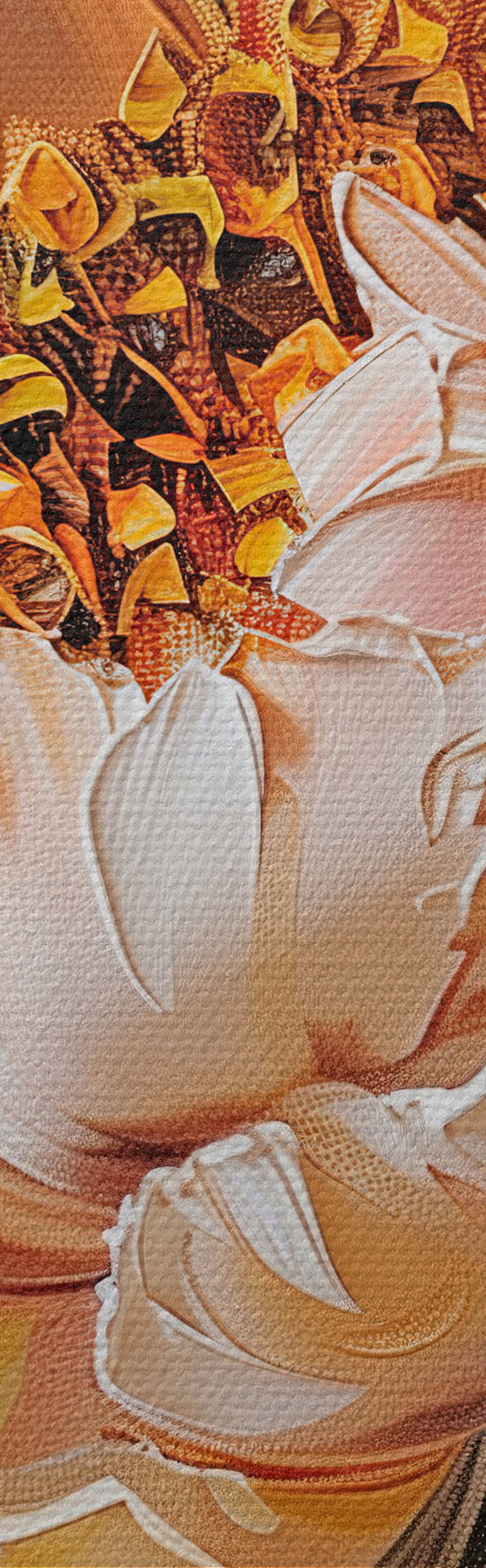 Для замовлення доступні три типи матеріалу: Економ Полотно - щільний і міцний матеріал для цифрового друку, ідентичний художньому полотну, водонепроникна поверхня, реалістичне відтворення деталей, матеріал середньої зернистості. Преміум полотно - фактура нагадує полотно художника (переплетені дрібні нитки). М'яке, деталізоване відтворення зображення на матовій поверхні. Еко-Преміум - високоякісне 100% бавовняне полотно. Завдяки натуральним бавовняним волокнам матеріал міцний і зносостійкий. Відмінна передача кольору та деталізація.