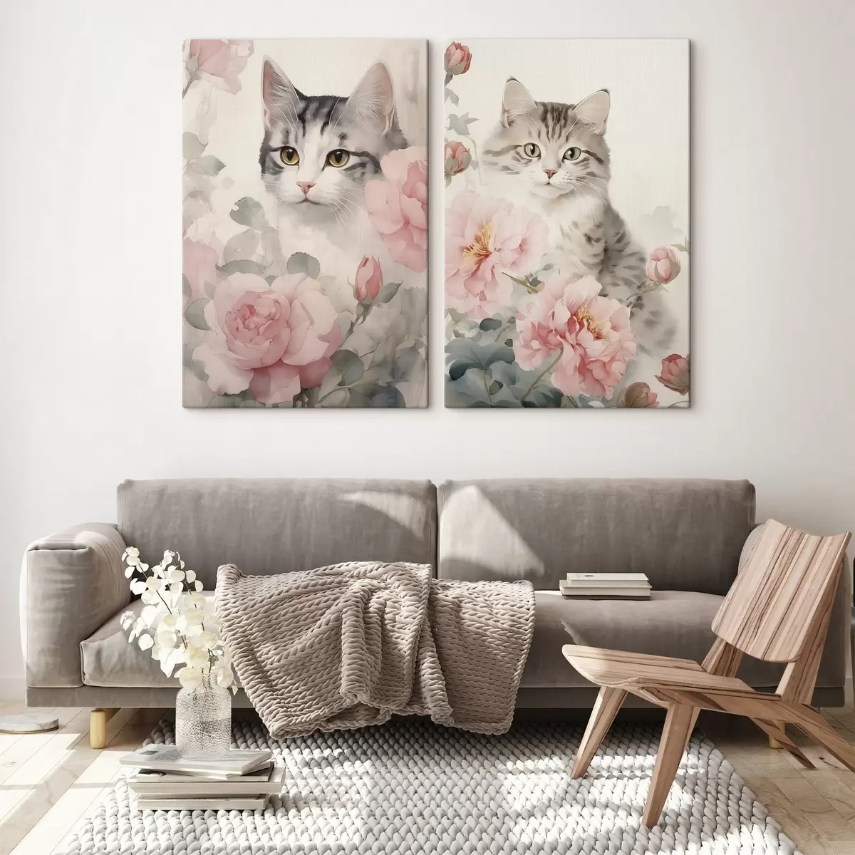 Картина Кіт серед квітів m00676