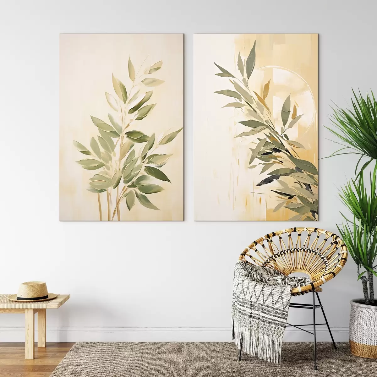 Картина Ботанічна гілка з зеленим листям на теплому тлі Арт. m00686