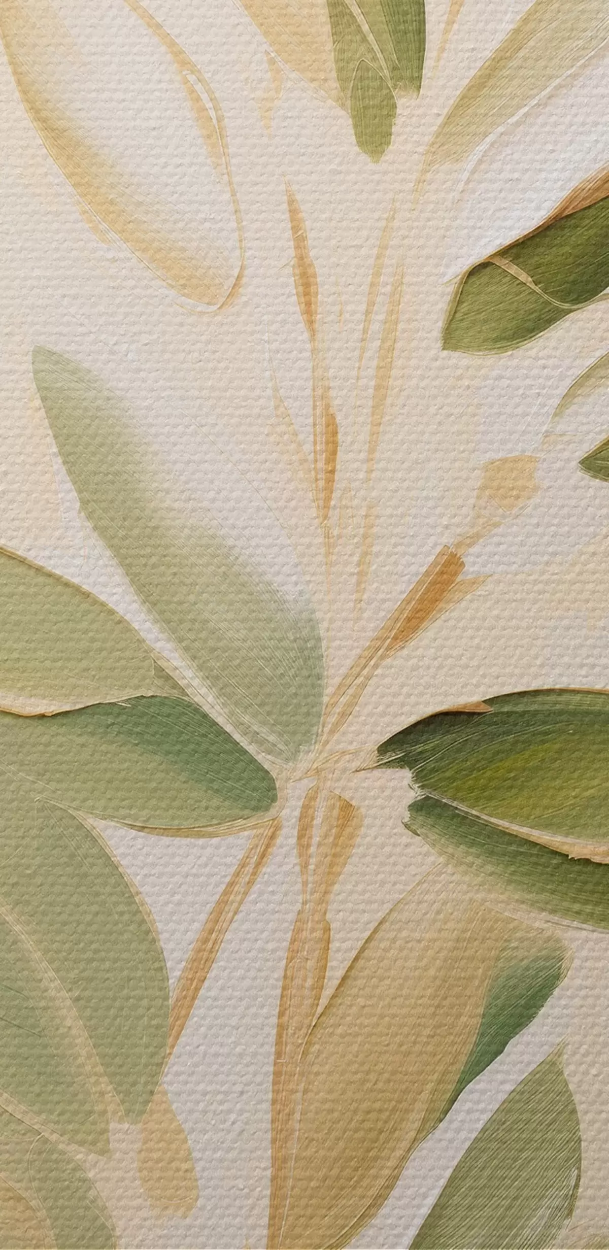 Картина Ботанічна гілка з зеленим листям на теплому тлі m00686
