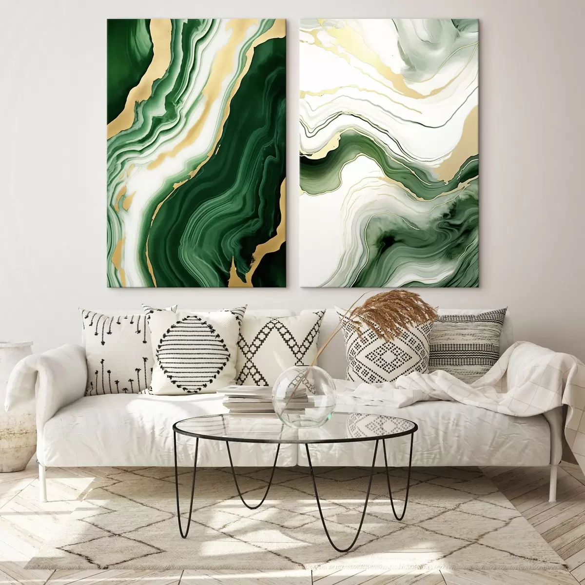 Картина Текстури зеленого та білого мармуру з оранжево-жовтими прожилками Арт. m00688