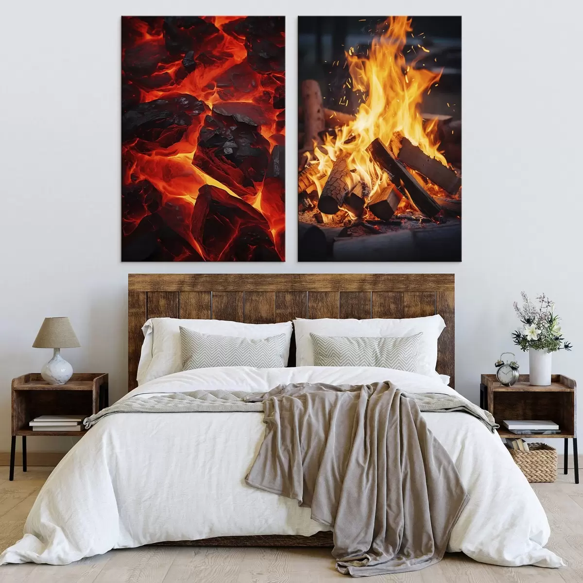Картина Палаюче вугілля та полум'я вогню в темряві Арт. m00696