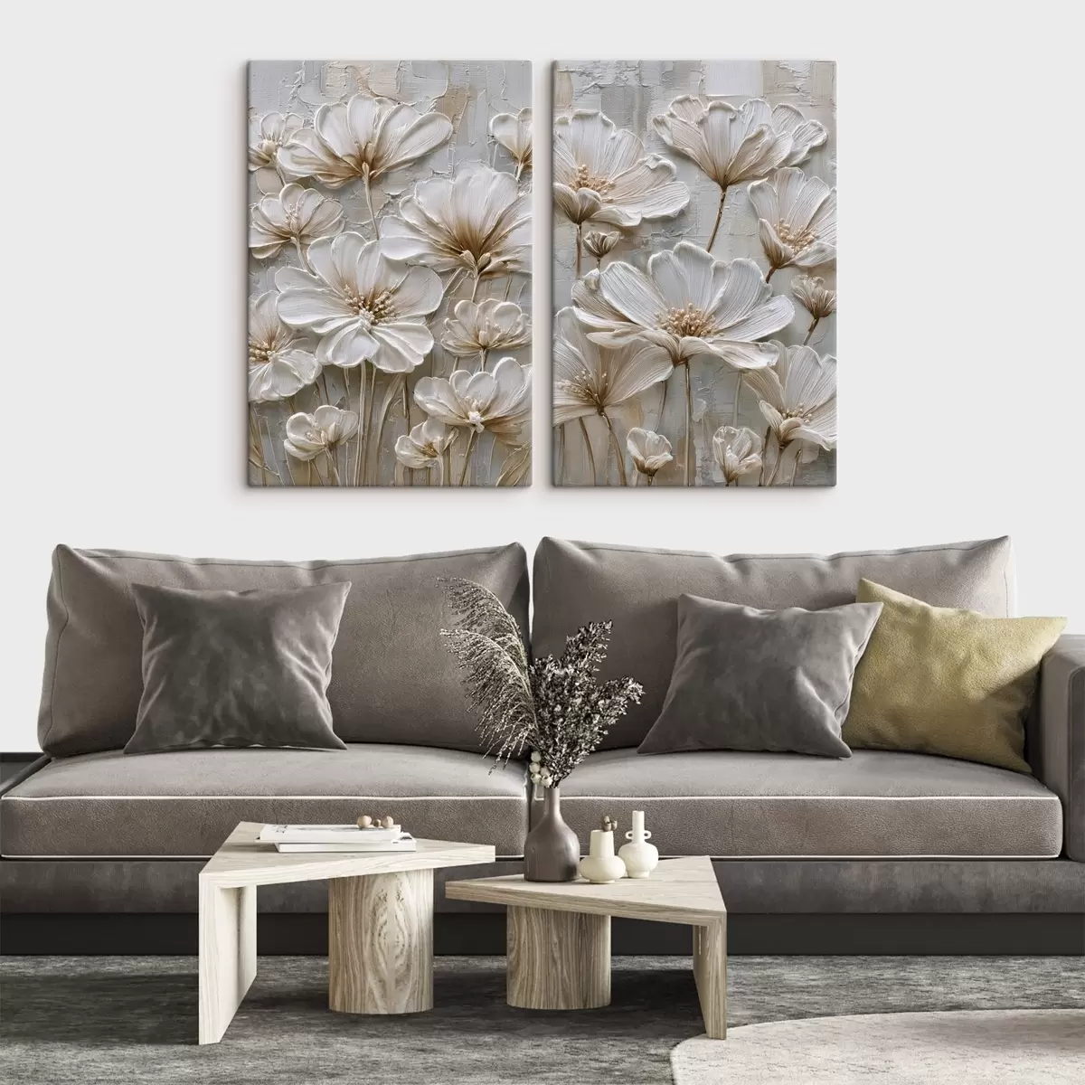 Картина кремові квіти в стилі імітації імпасто m00701