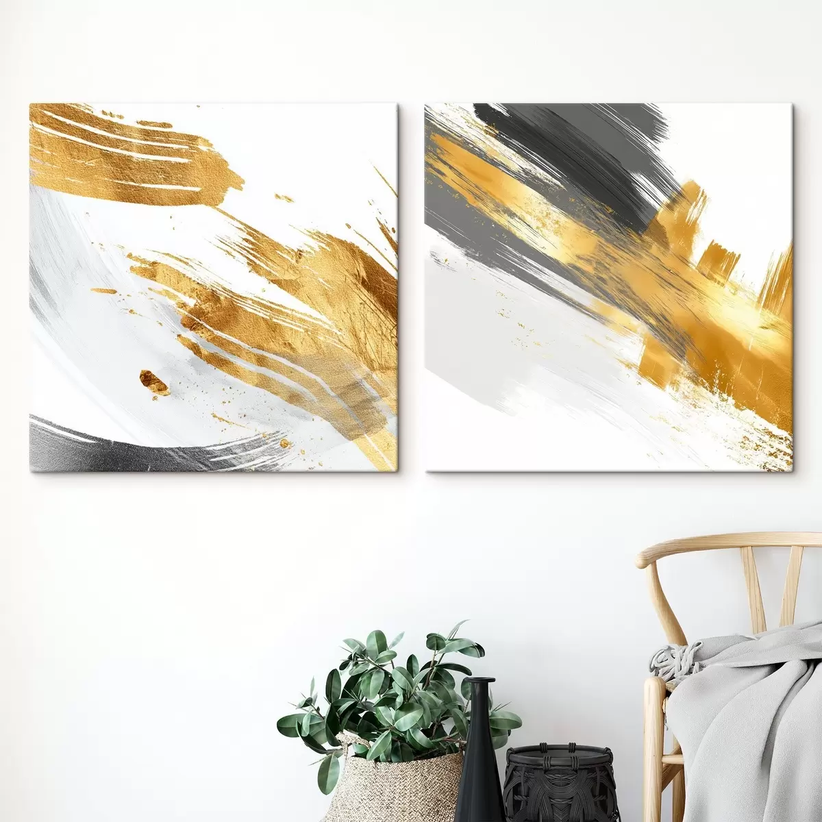 Картина Динамічна абстракція з жовтими та сірими штрихами Арт. m00748