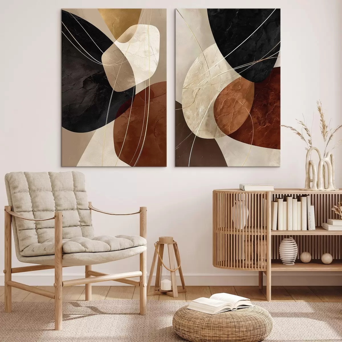 Картина Геометричні овали в теплій палітрі з жовтими лініями Арт. m00763
