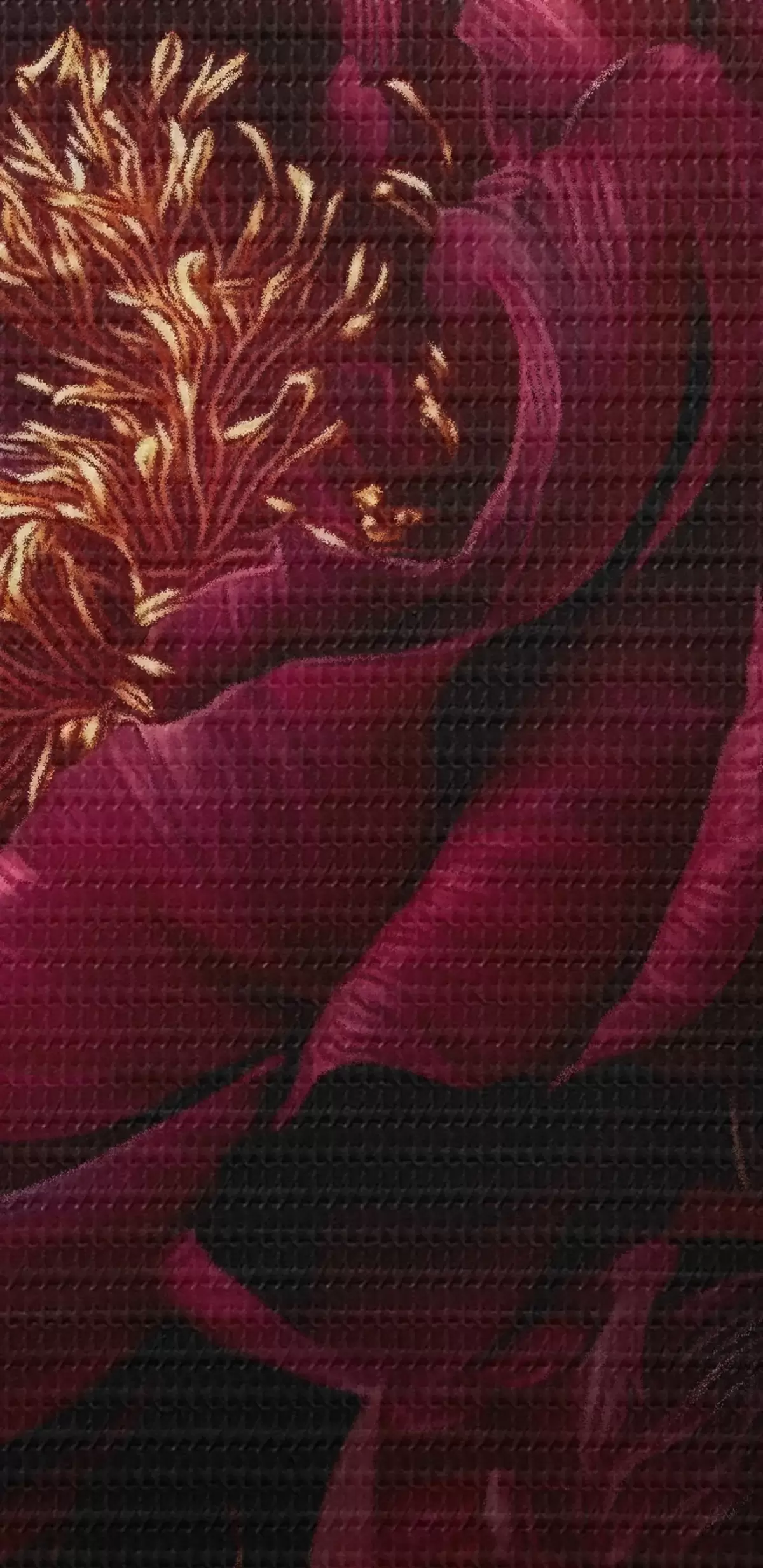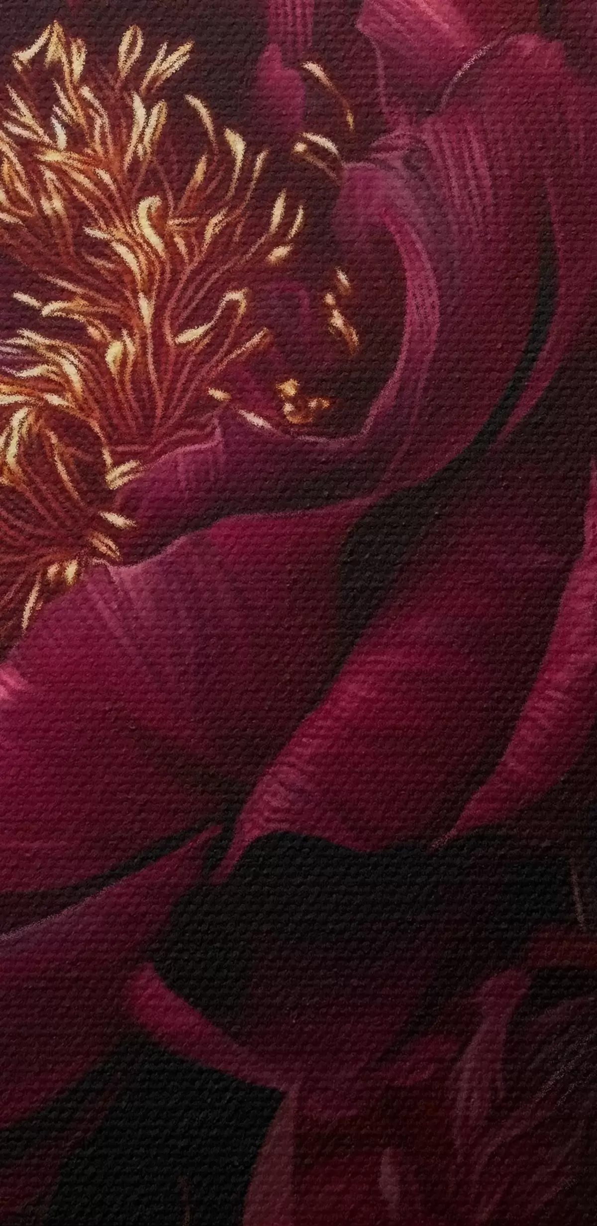 Картина Бургундські півонії та силует з місячною головою на чорному тлі Арт. m00765