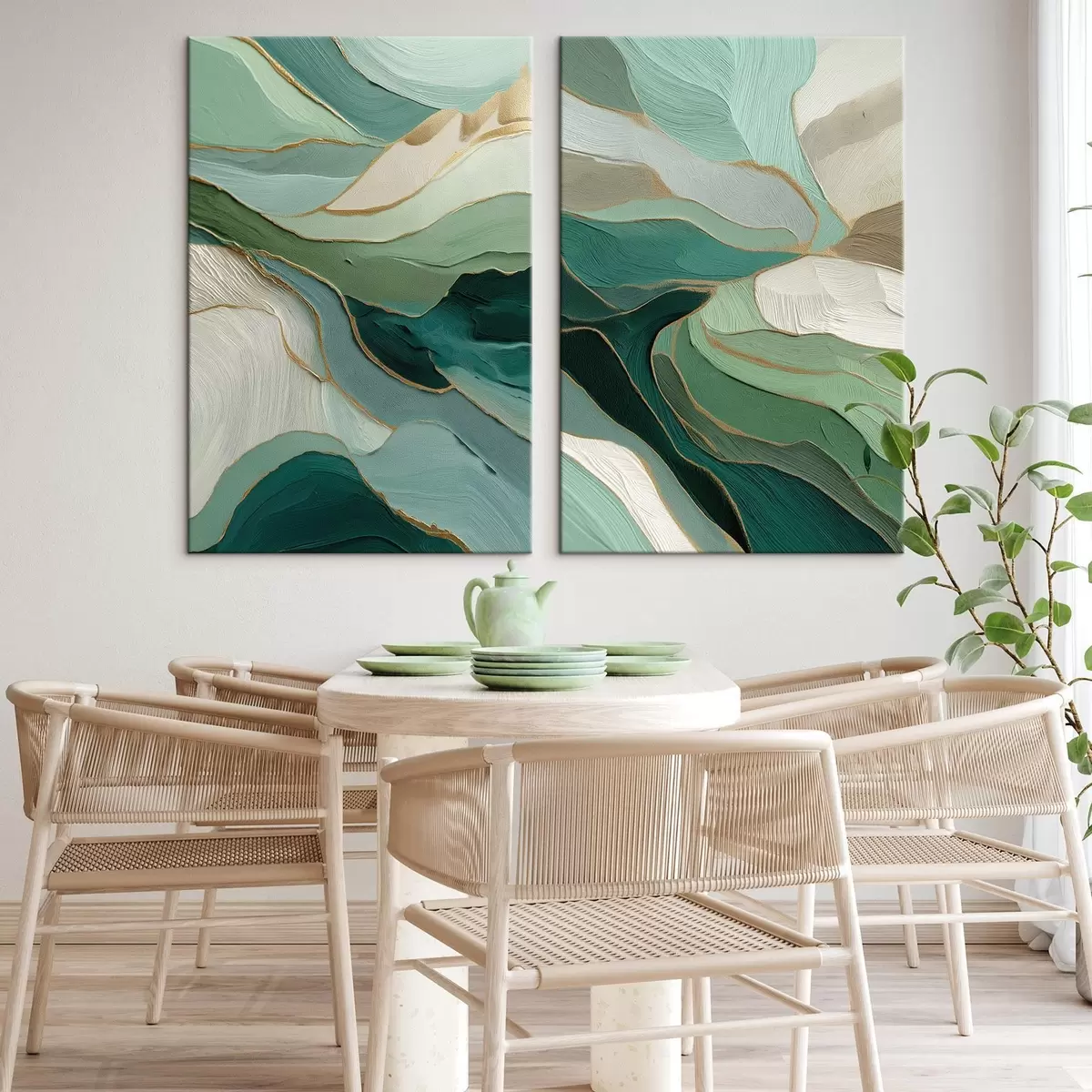 Картина Смарагдова багатошарова абстракція з жовтим контуром Арт. m00766