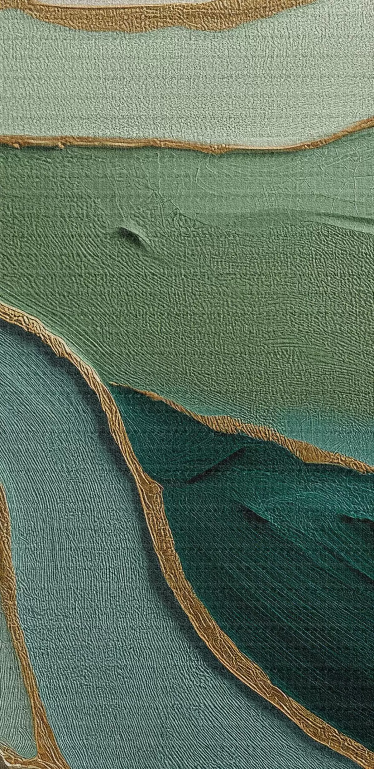 Картина Смарагдова багатошарова абстракція з жовтим контуром Арт. m00766