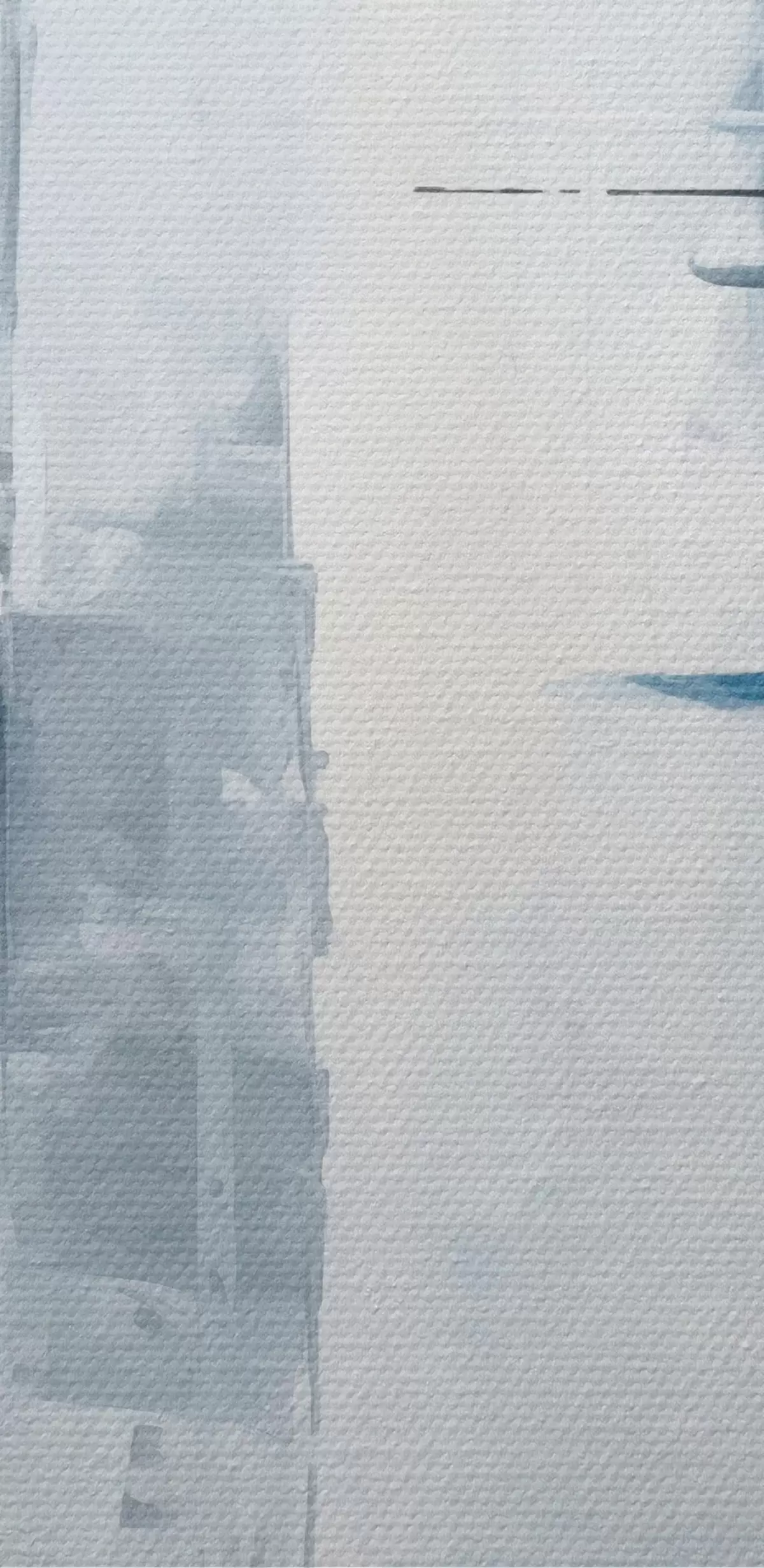 Картина Абстрактна імітація живопису з використанням синього, сірого та білого кольорів, вертикальних ліній та геометричних фігур Арт. m00819