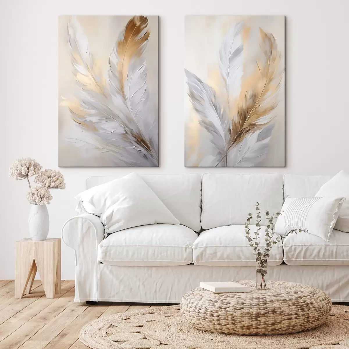 Картина Пір'я з помаранчевими акцентами, фактурна мінімалістична композиція, сучасне мистецтво Арт. m00828