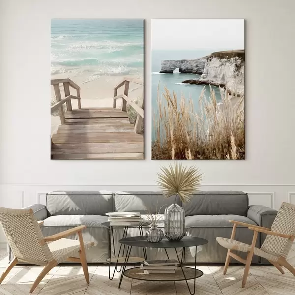 Картина Прибережні скелі та суха трава біля бірюзового моря Арт. m00875