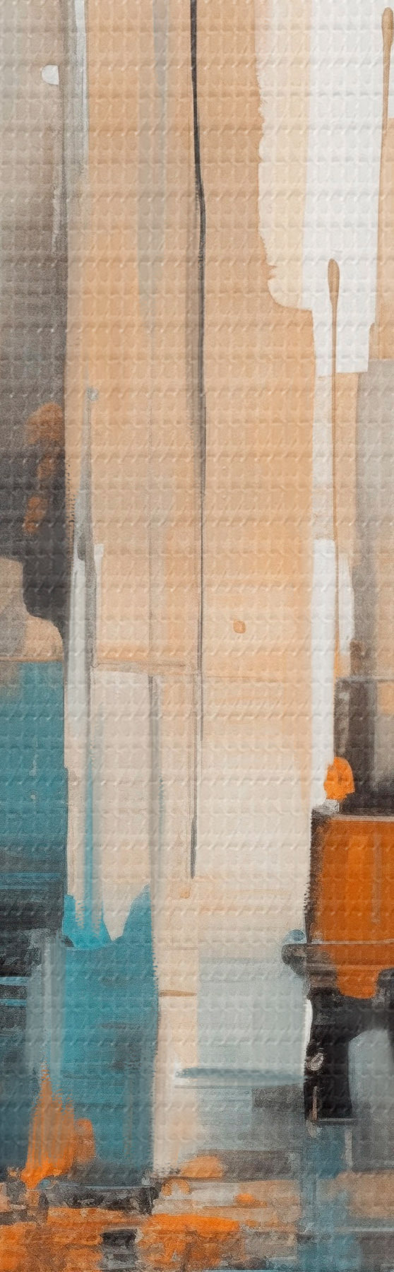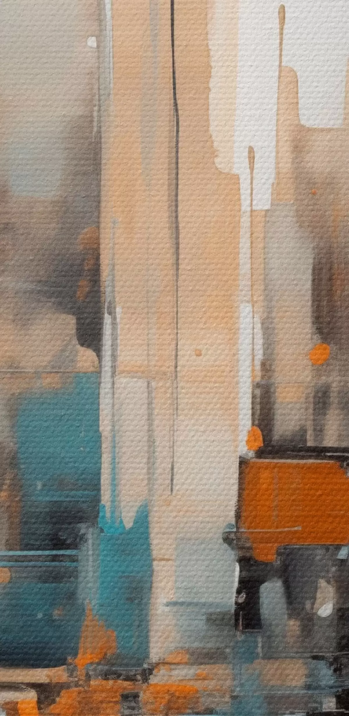 Картина Абстрактний міський пейзаж з вертикальними мазками в відтінках оранжевого, синього та білого, стиль живопису m00876