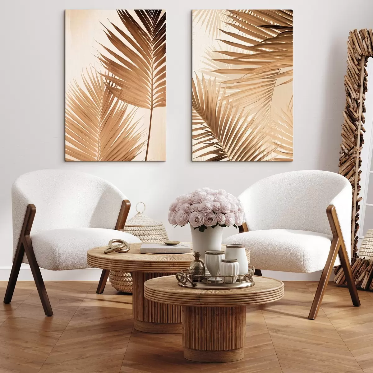 Картина Пальмове листя в коричневих тонах, нейтральний фон, мінімалістичний стиль, природне освітлення, тропічна атмосфера Арт. m00880