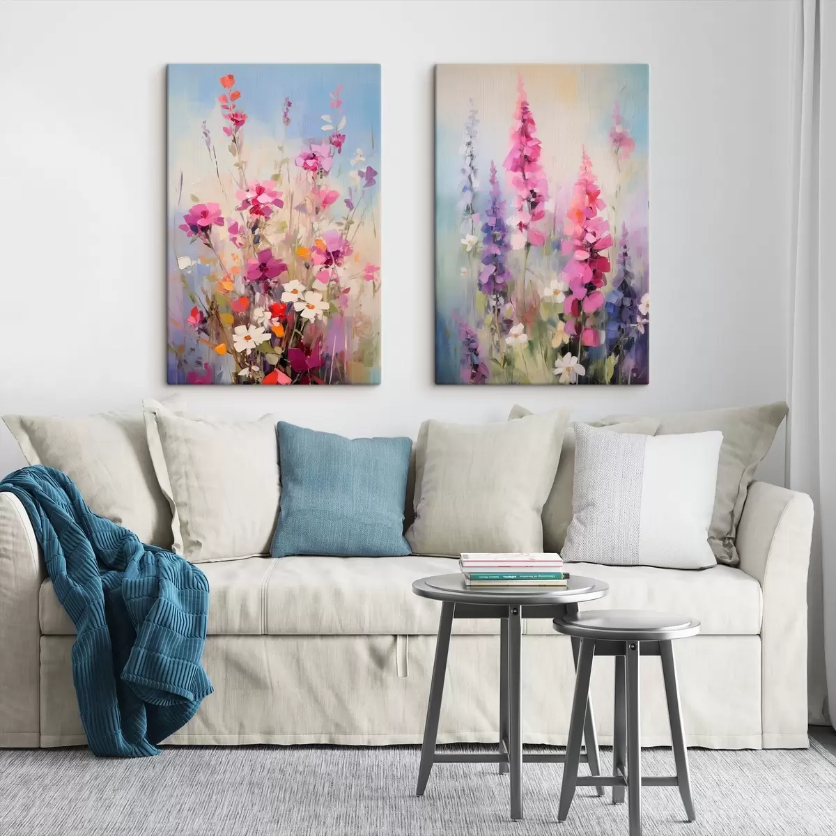 Картина Яскраві квіти з білими ромашками в полі, м'які мазки пензля, пастельні кольори, імпресіоністичний стиль Арт. m00882