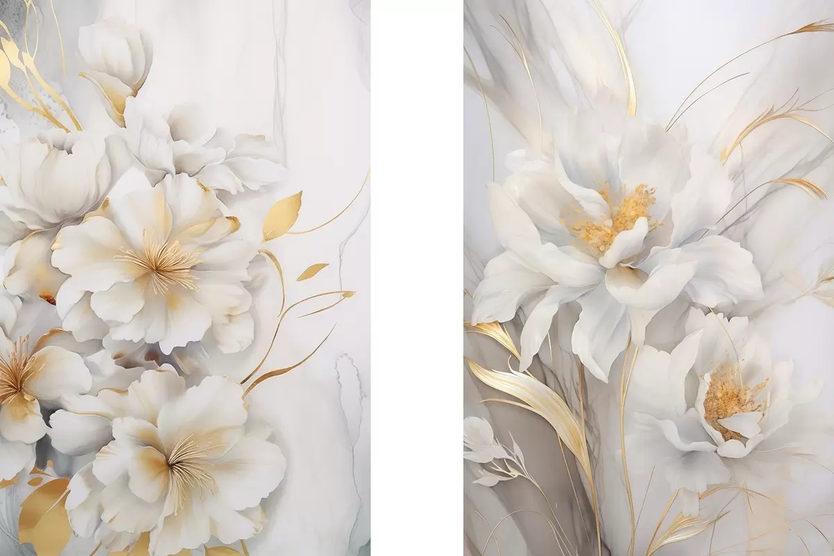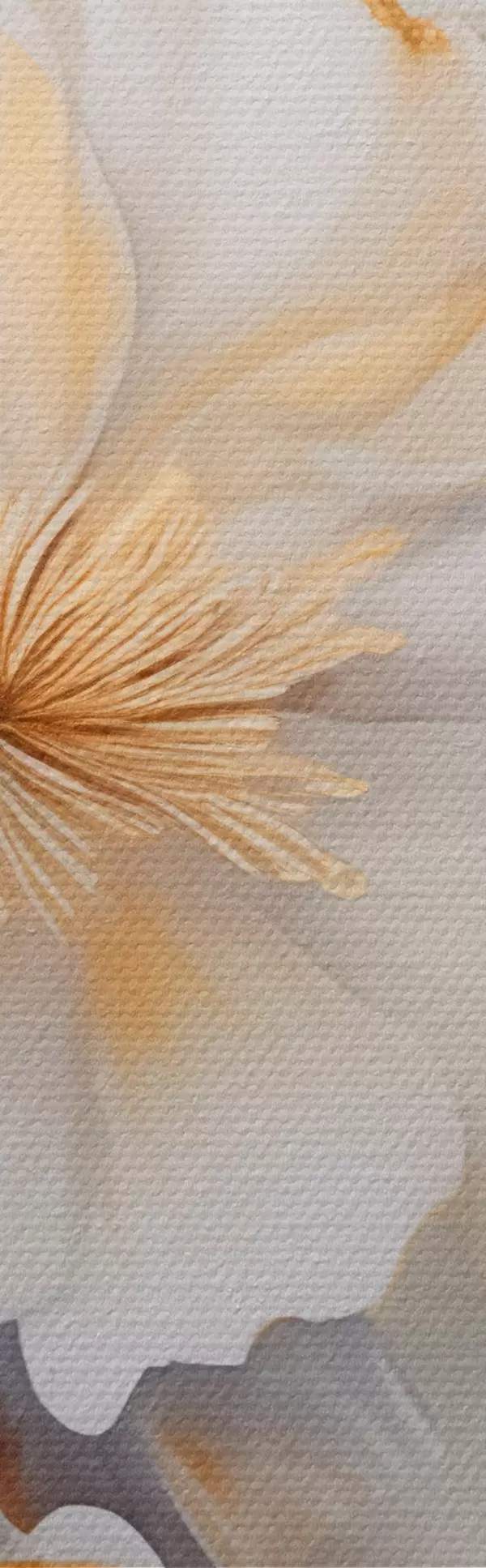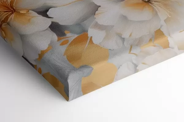 Картина Білі квіти з жовтими деталями, пелюстки з легкими тінями, світлий фон з легким мармуровим ефектом Арт. m00889