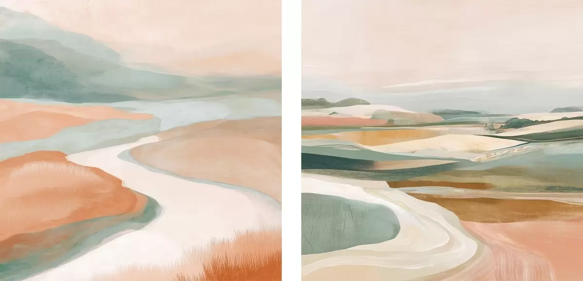 Картина Абстрактні пагорби та річка в пастельній гамі кольорів m00896