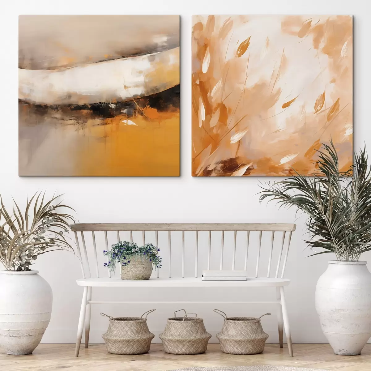 Картина Абстрактний диптих в олійному стилі з жовто-помаранчевими та чорними тонами Арт. m00897