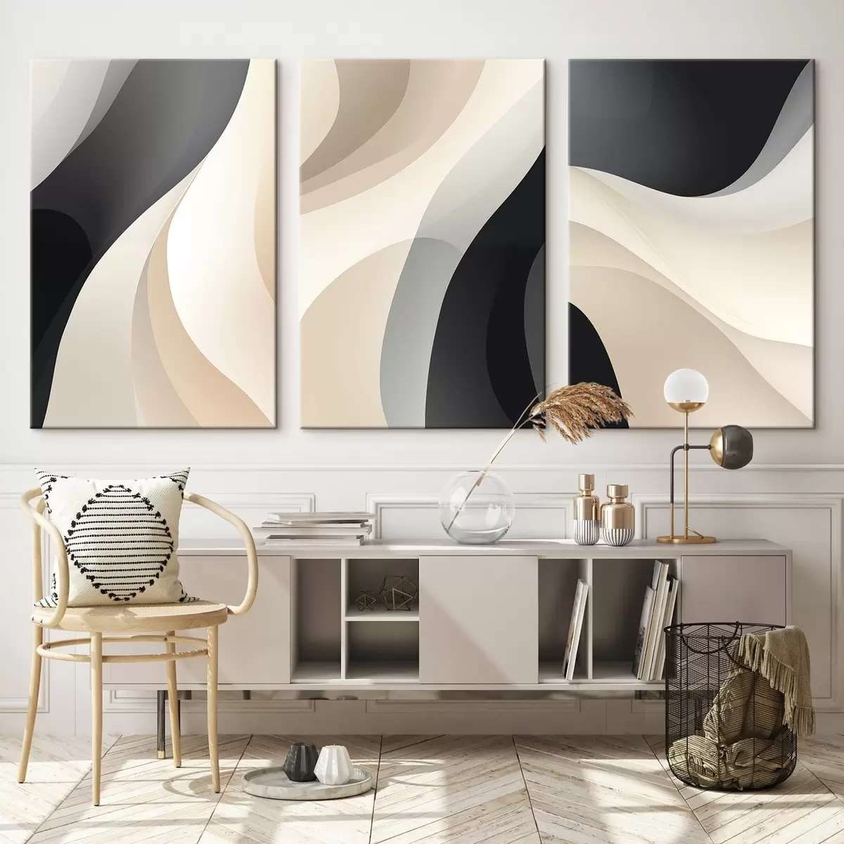 Картина Мінімалістичні плавні лінії в кремовому, сірому та чорному кольорах Арт. m00962