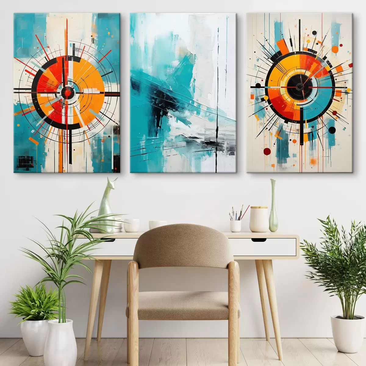 Картина Радіальний абстрактний малюнок з блакитними та помаранчевими сплесками Арт. m00973