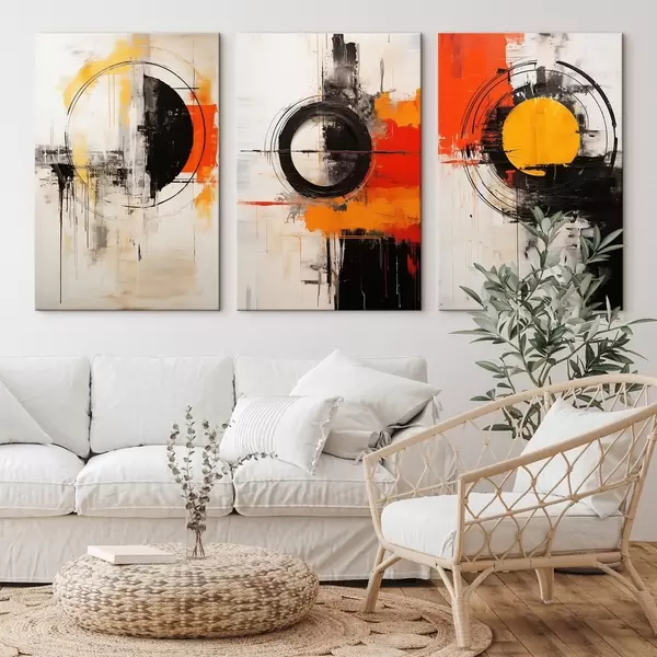 Картина Текстуровані кола та сміливі штрихи чорного, охристого та помаранчевого кольорів Арт. m00974