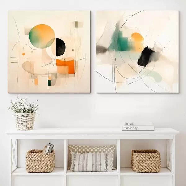Картина Абстрактний диптих з круглими формами та динамічними лініями m00981