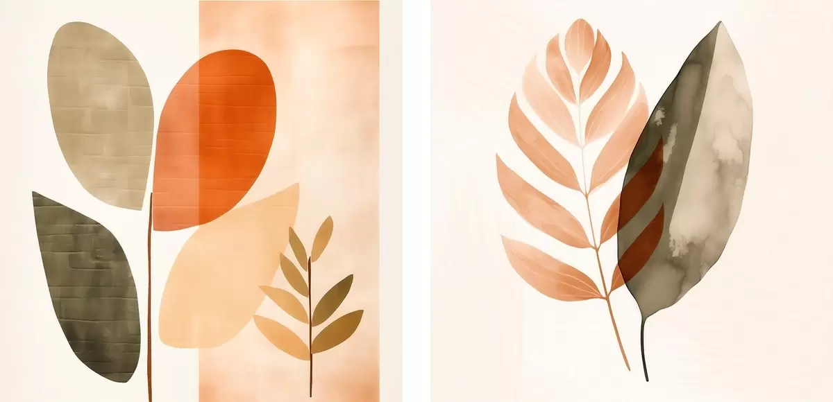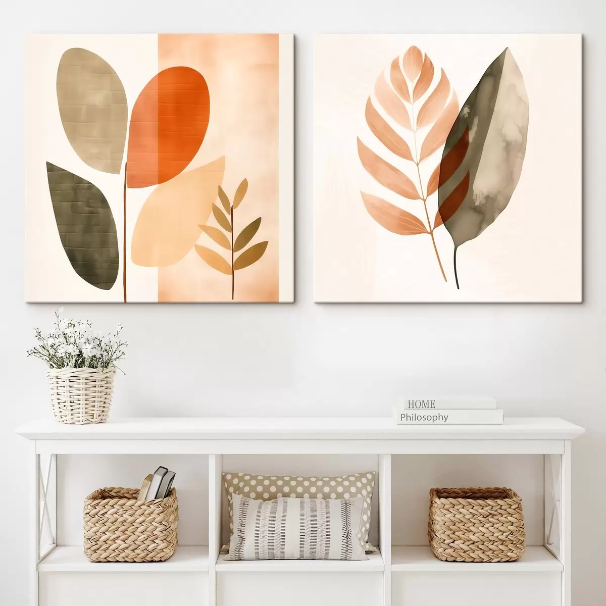 Картина Диптих з ботанічними мотивами в пастельній гамі Арт. m00983