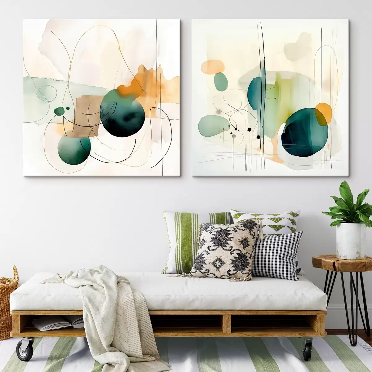 Картина Двочастинна абстрактна композиція з м'якими кольоровими плямами Арт. m00985