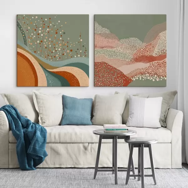 Картина Двочастий абстрактний пейзаж з крапчастими та хвилястими елементами Арт. m00987