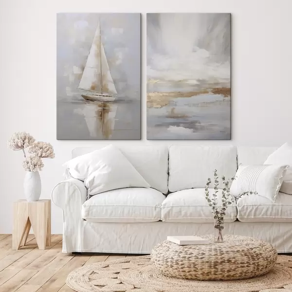 Картина Вітрильник і абстрактна композиція, імітація живопису m00999