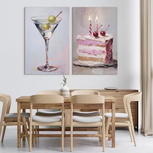 Картина Склянка з напоєм і шматочком торта, імітація живопису Арт. m01019