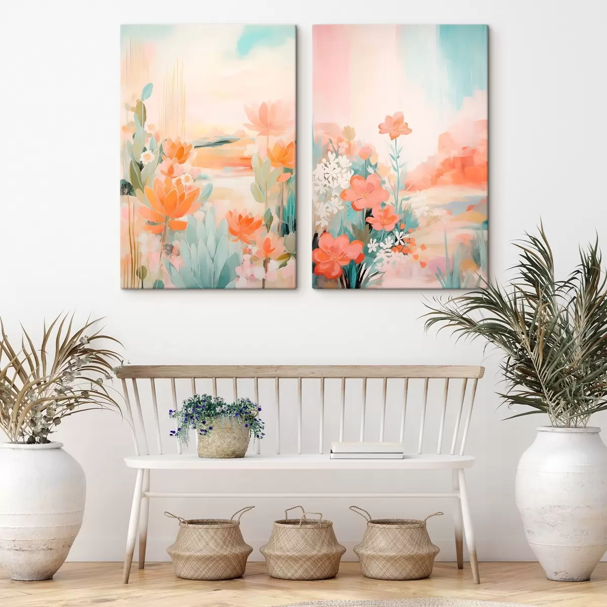 Картина Квіткові мотиви в пастельних тонах на тлі світлої туманної долини Арт. m01085