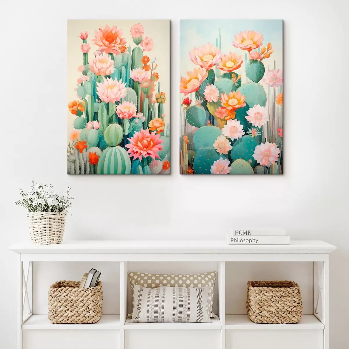 Картина Кактуси з великими квітами, пастельна палітра та відчуття спокою Арт. m01086