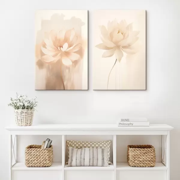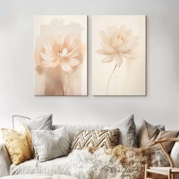 Картина Квіткова композиція в теплих бежевих тонах з легкими мазками пензля і повітряним фоном Арт. m01087